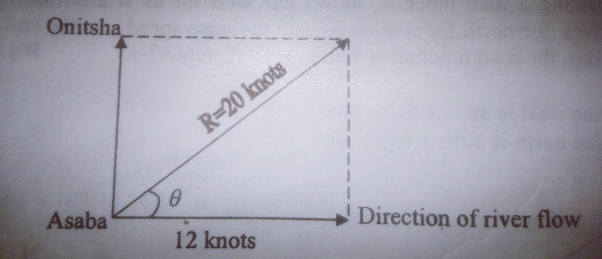 A tug boat is travelling from Asaba to Onitsha across the River Niger with a resultant