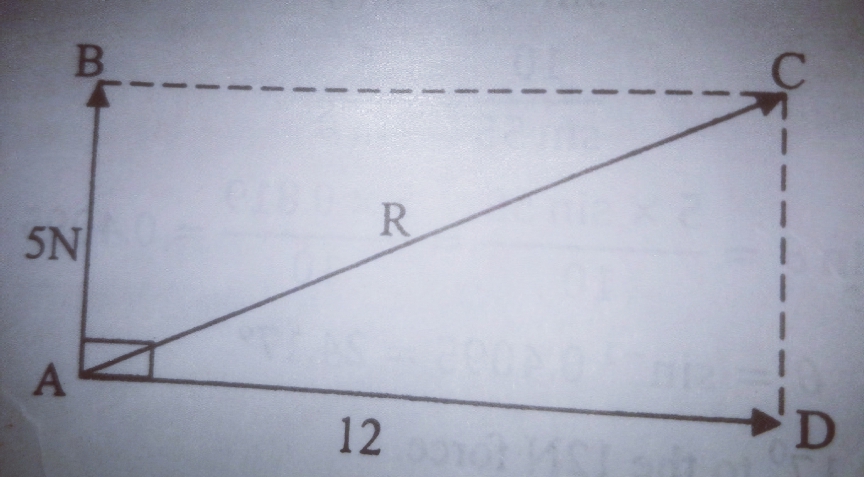 An object is acted upon by two forces of 5N and 12N. Calculate the resultant of the forces if