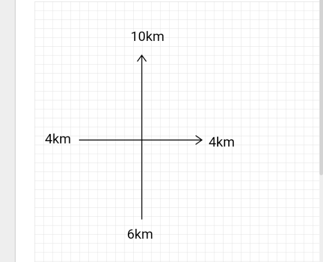 A lorry travels 10km northwards, 4km eastwards, 6km southwards and 4km westwards to arrive at a point T. what