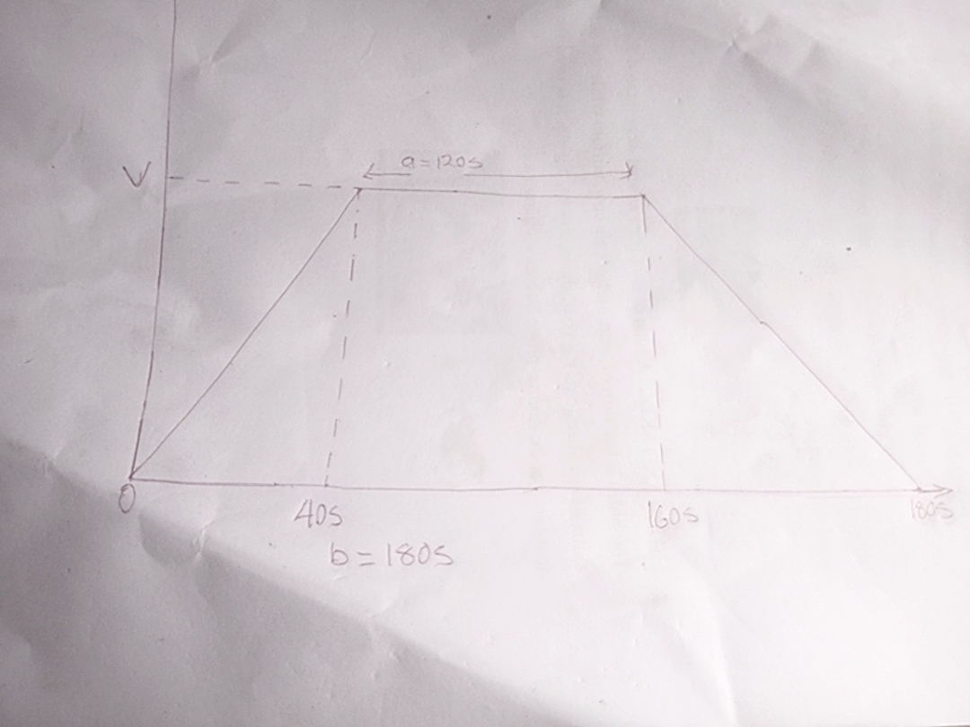 in 3 mins. It has first a uniform acceleration for 40s then a constant speed and it is brought to rest with a